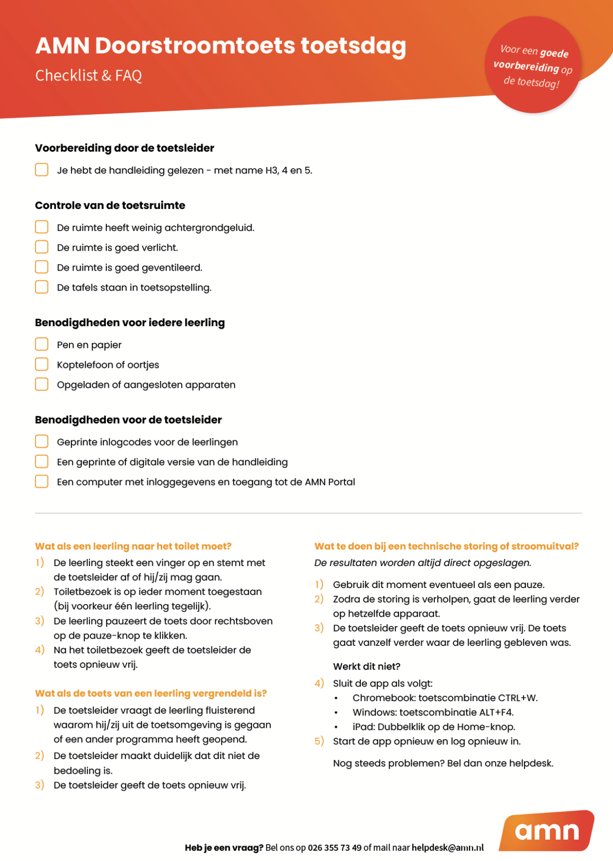 Print de checklist en flowchart en leg deze klaar voor de toetsleider.