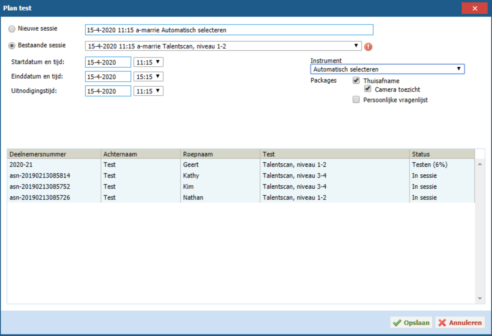 Het kan voorkomen dat je later alsnog deelnemers wilt toevoegen aan een al geplande sessie. Dit doe je eenvoudig via de Testplanner. In dit artikel lees je stap voor stap hoe je dit doet.