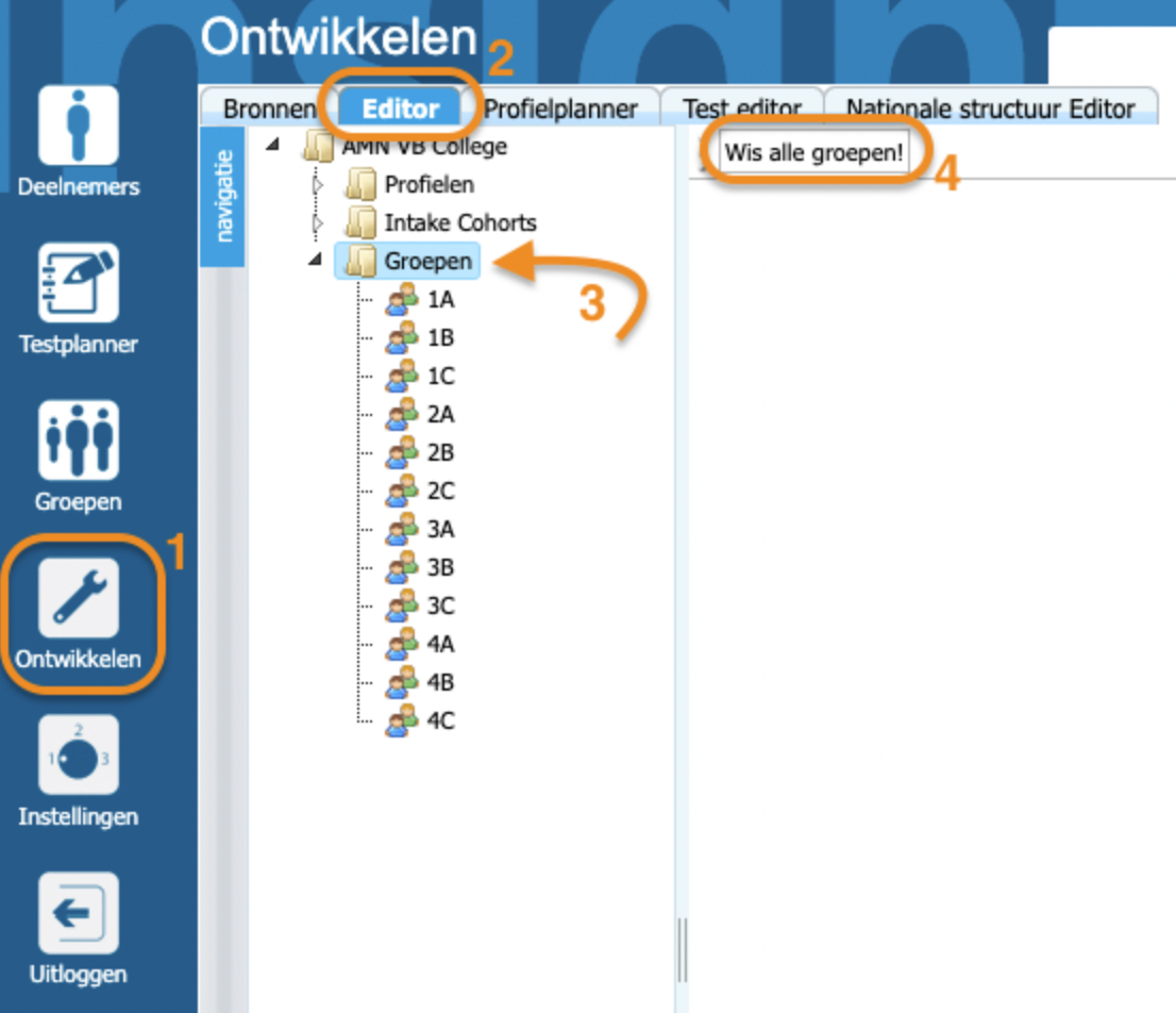 Soms is het nodig om groepen in Insight te verwijderen. Dit doe je bijvoorbeeld wanneer bestaande leerlingen opnieuw in een nieuwe groep moeten worden geplaatst. Let op: als er een koppeling is tussen de AMN-database en een LAS (Leerling Administratiesysteem), mag je deze stappen nooit uitvoeren.