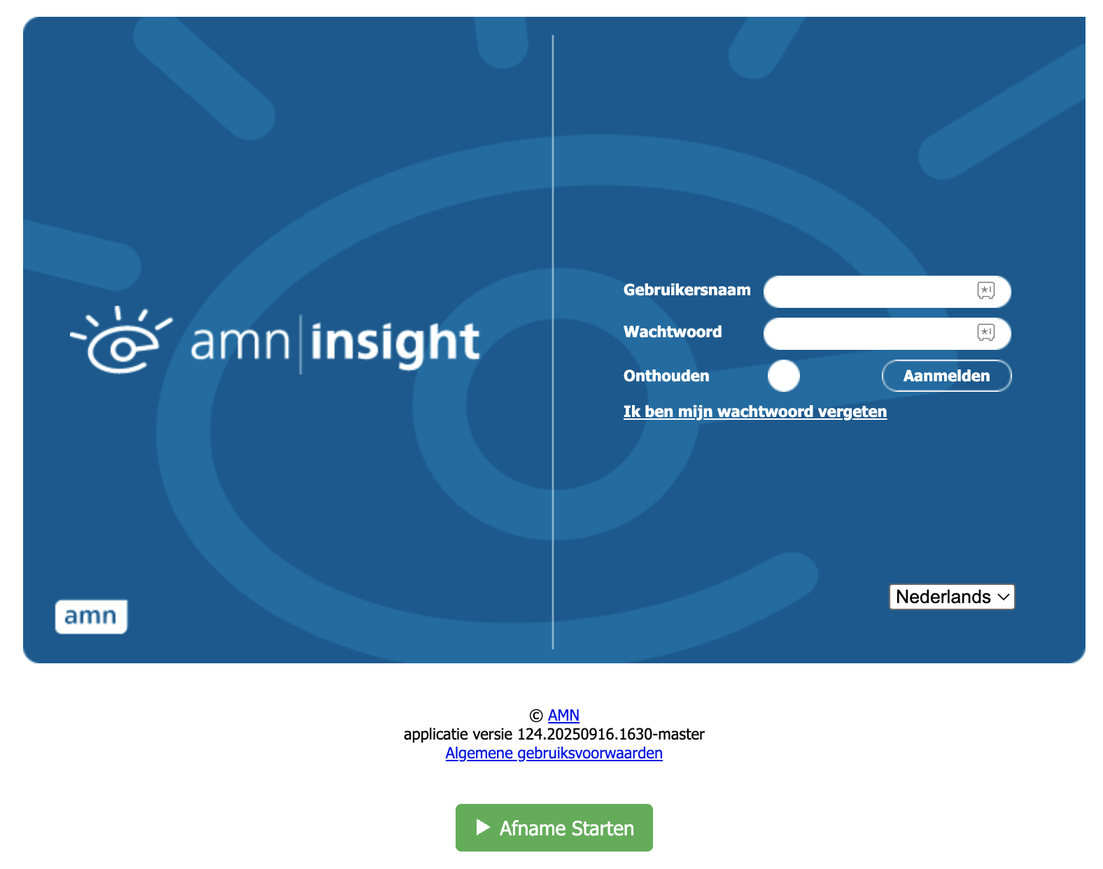 Afhankelijk van de organisatie kan er een SSO of andere inlogmethode actief zijn, maar standaard log je in via de school-/bedrijfs‑sub‑domein van AMN.
