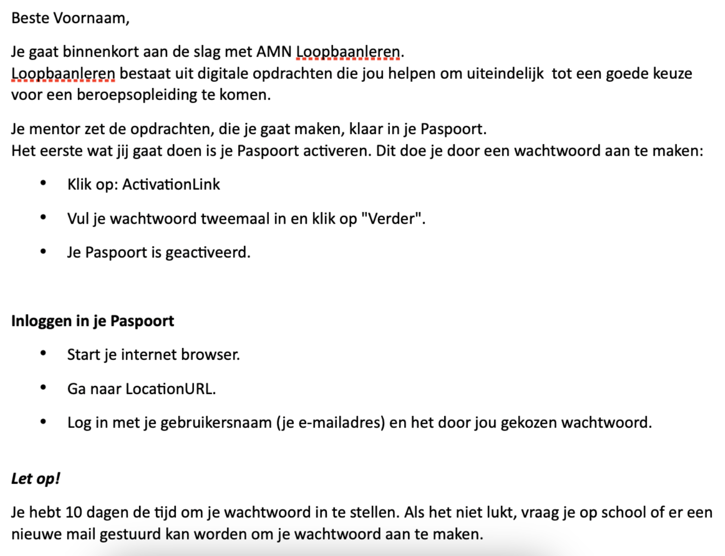 In deze e-mail staat een link waarmee je jouw Paspoort kunt activeren