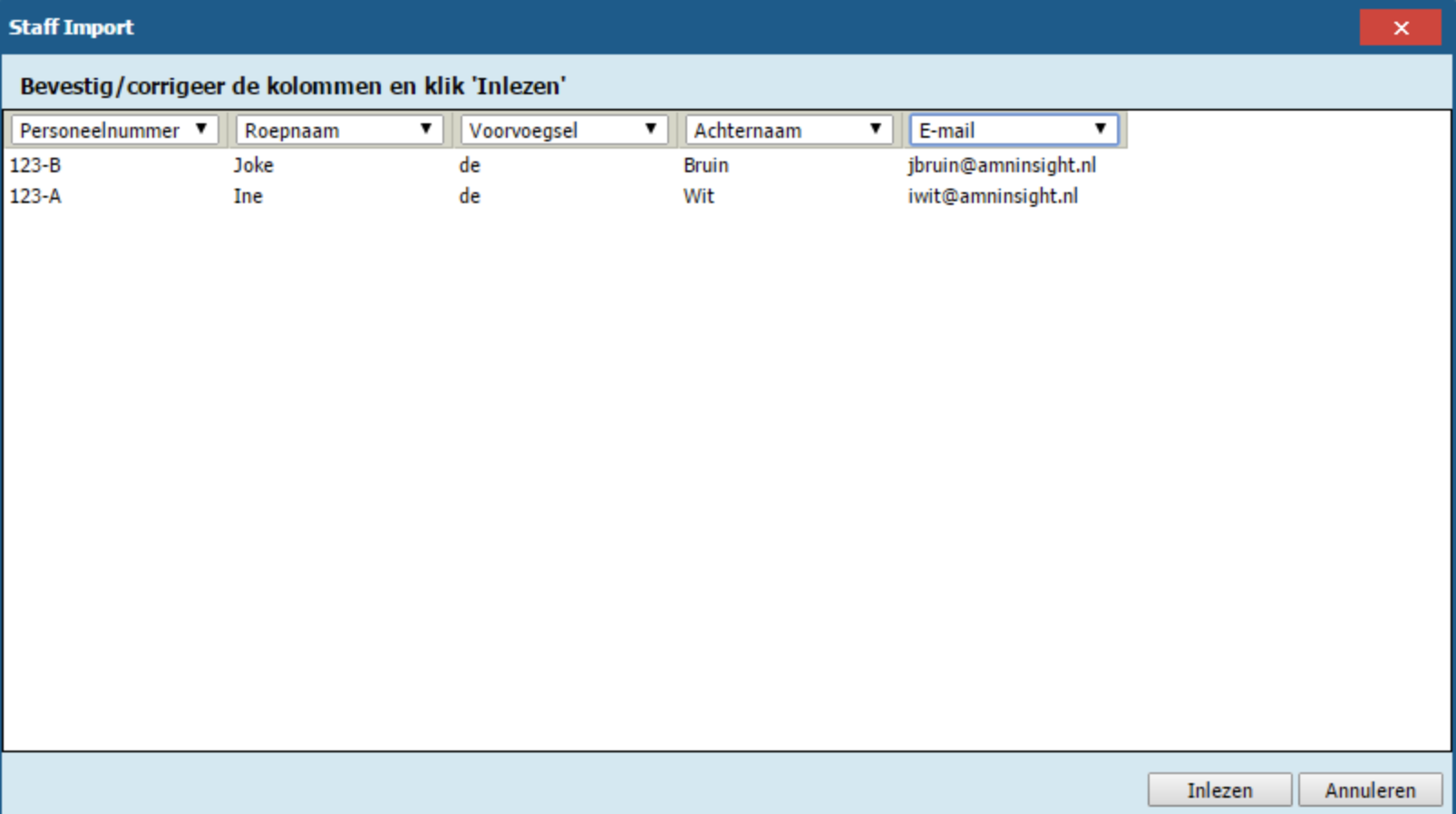 Lees de foutmeldingen, pas het inleesbestand aan en herhaal de stappen indien nodig.