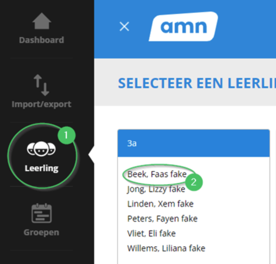 Stap 1: Selecteer leerling