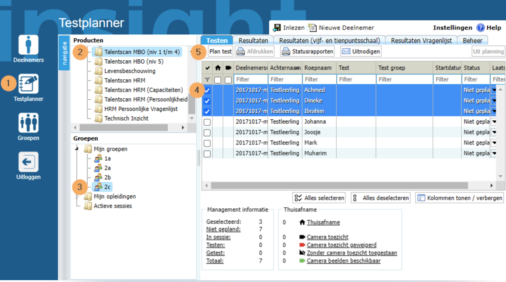 Met deze 10 stappen plan je eenvoudig een test in via de Testplanner. Controleer altijd of alles juist is ingesteld om misverstanden of foutieve planningen te voorkomen.