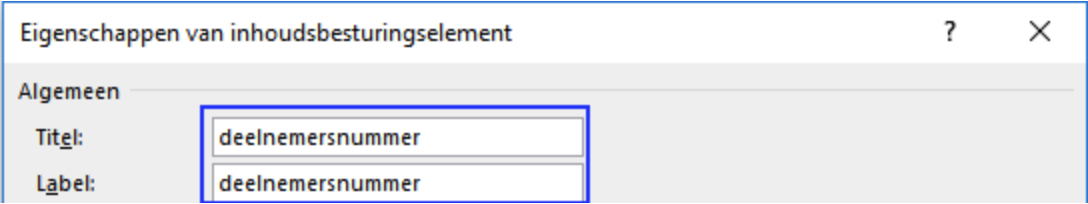 Bijvoorbeeld: Naam deelnemer: [veld]