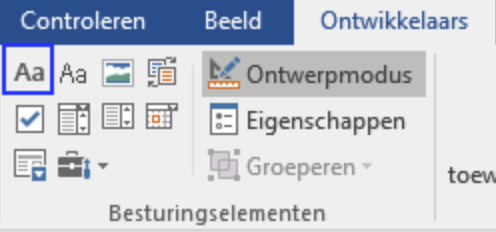 Klik in het tabblad Ontwikkelaars op het besturingselement Tekst zonder opmaak (Aa)