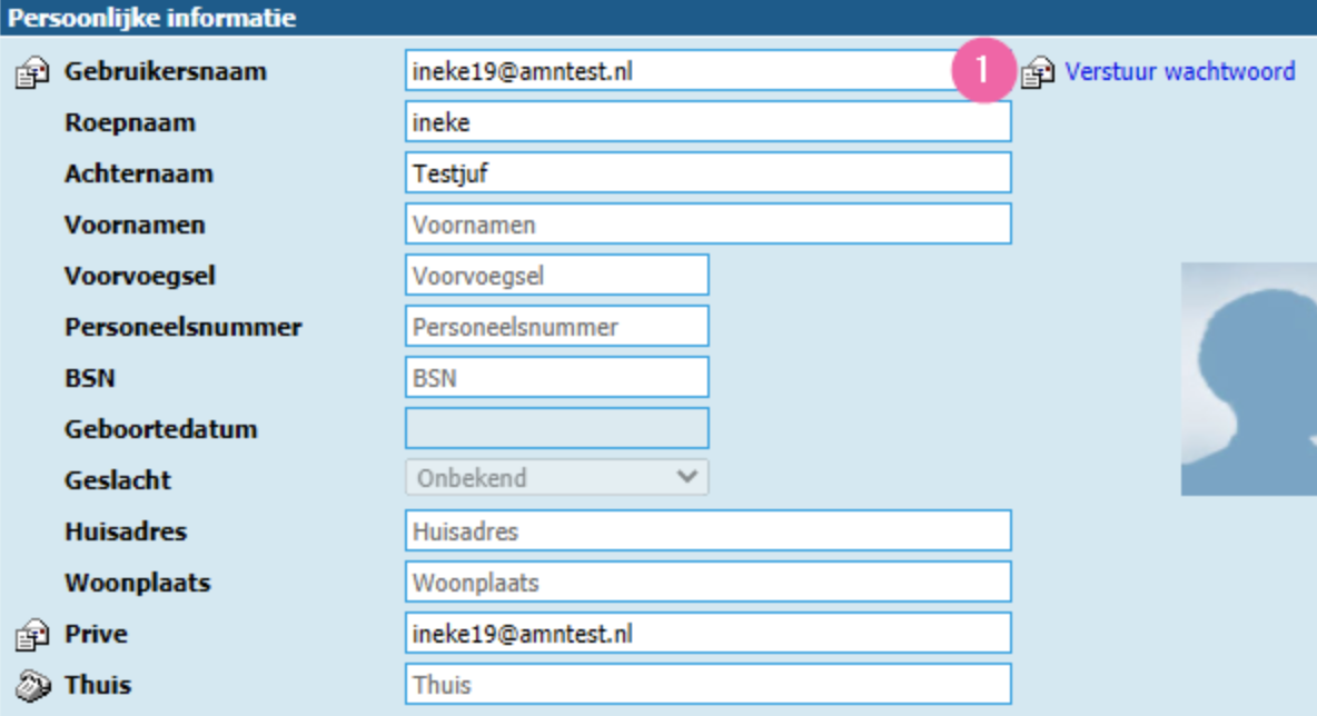 Klik naast de gebruikersnaam op de link ‘Verstuur wachtwoord’.